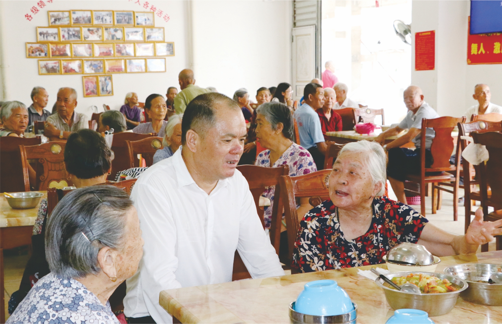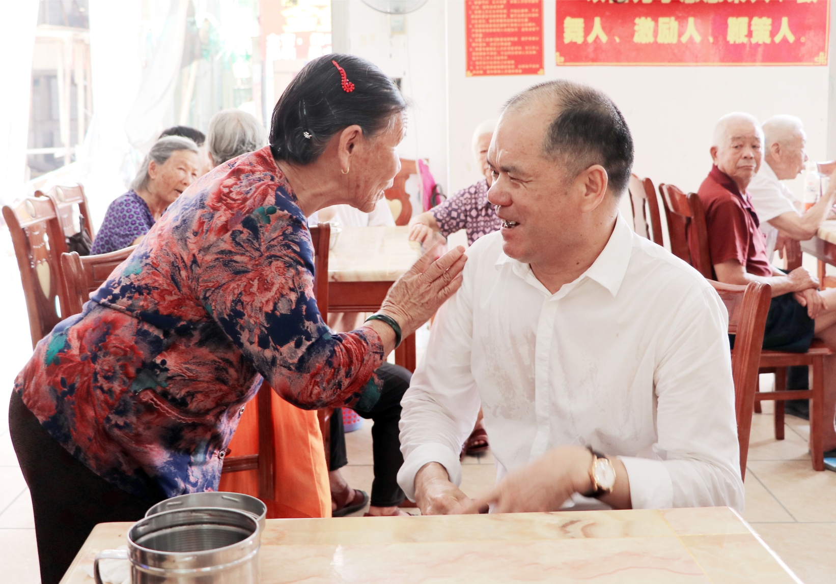 图/林加荣(中)在幸福院食堂与老人交谈。
